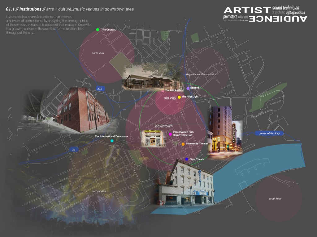 Studying the various scales of networks in the music industry through formal and informal event spaces.