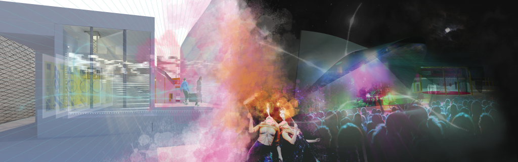 The transformative behavior of the program through the day and night manifests identity and memory into the site by establishing a mutual relationship between the community, site, and the performer, and providing a third place for the shared experience of music.